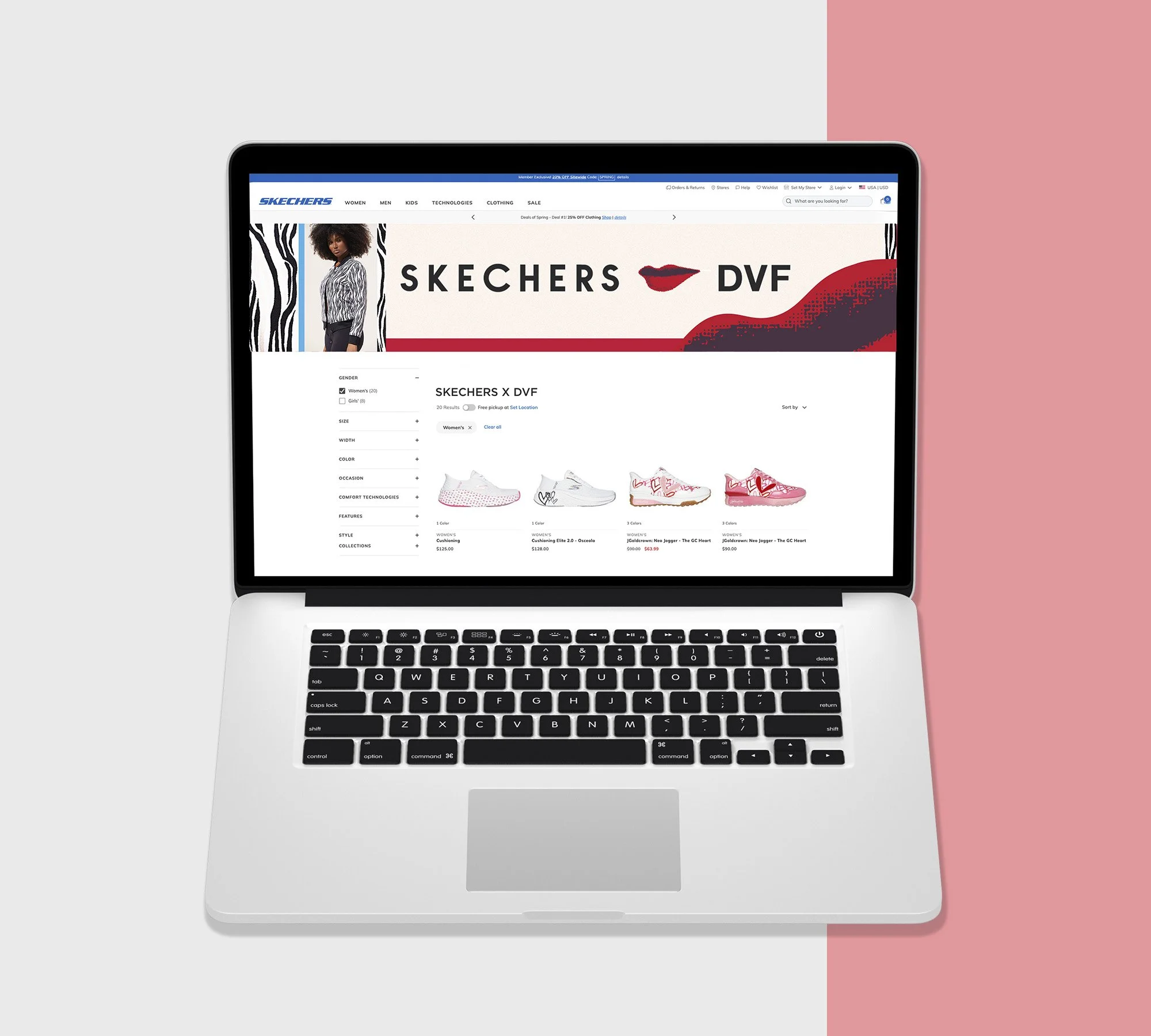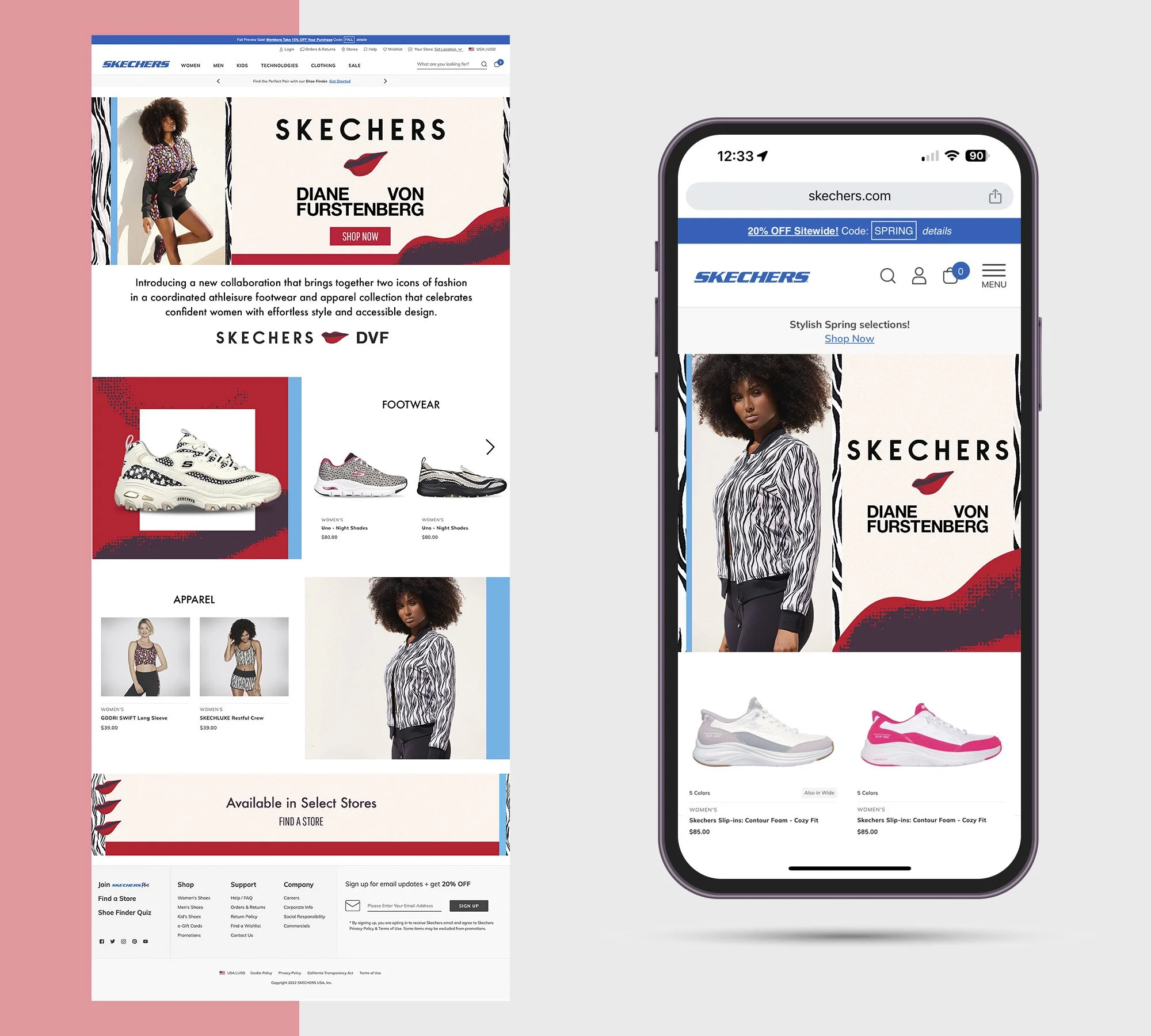 For the second Skechers X DVF launch, I led a creative refresh to highlight new styles and reignite excitement. Bold visuals blended DVF’s iconic patterns with Skechers’ comfort-driven branding.