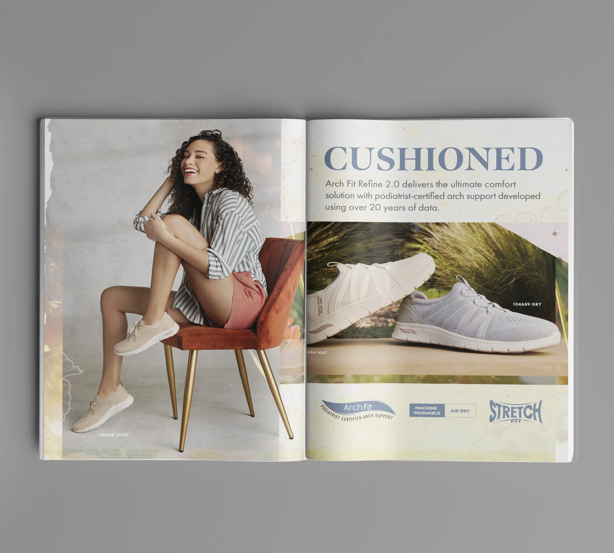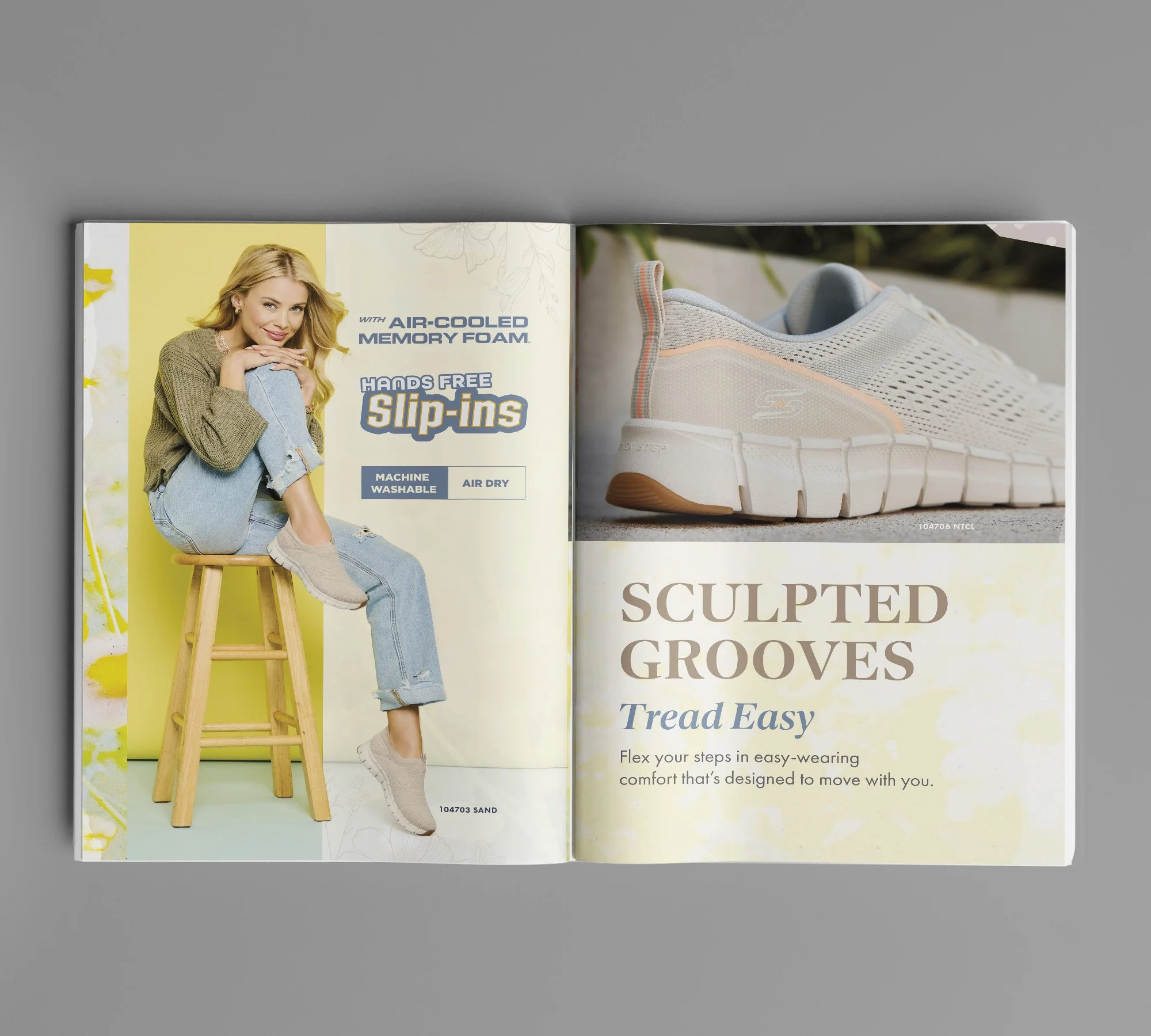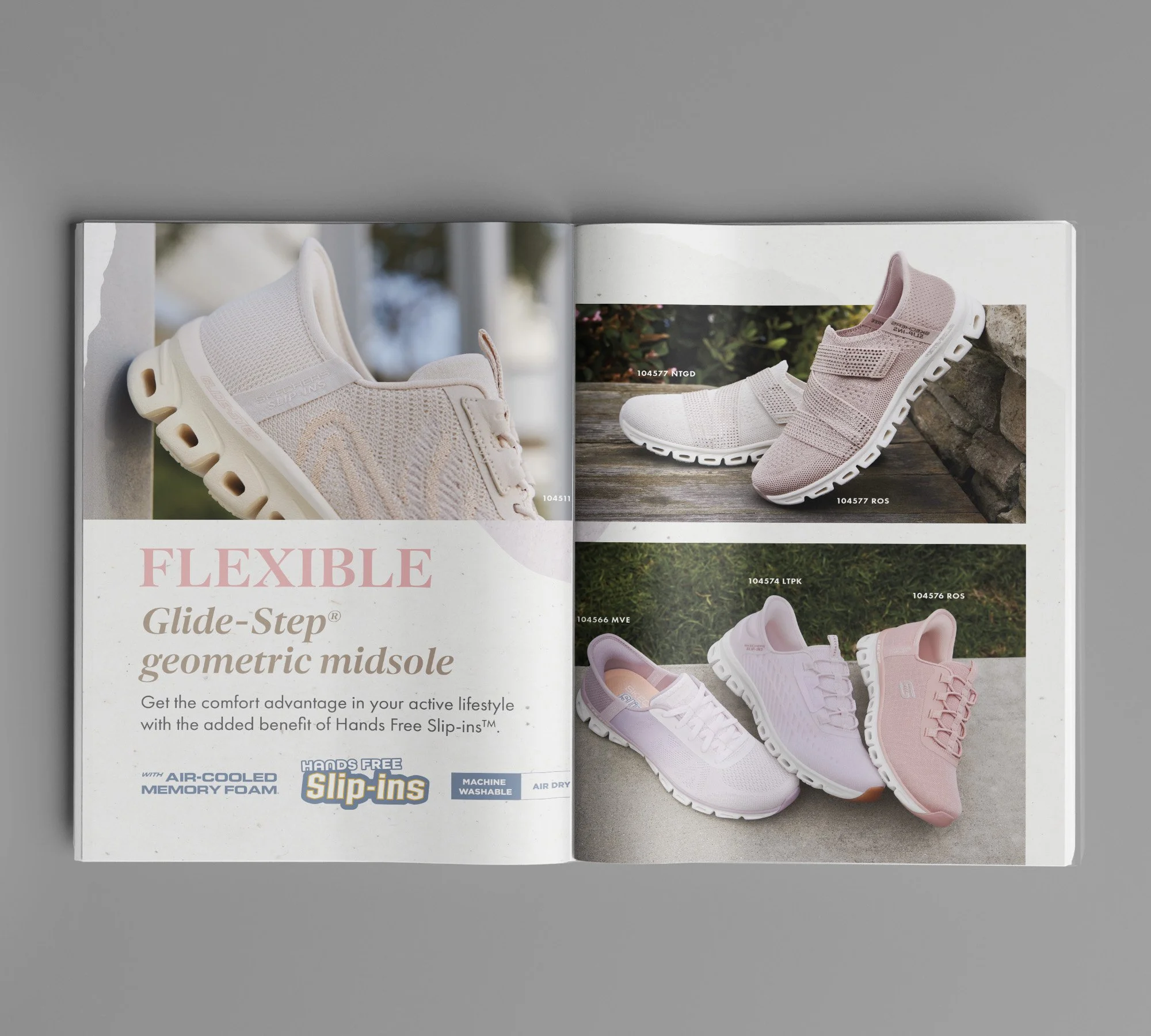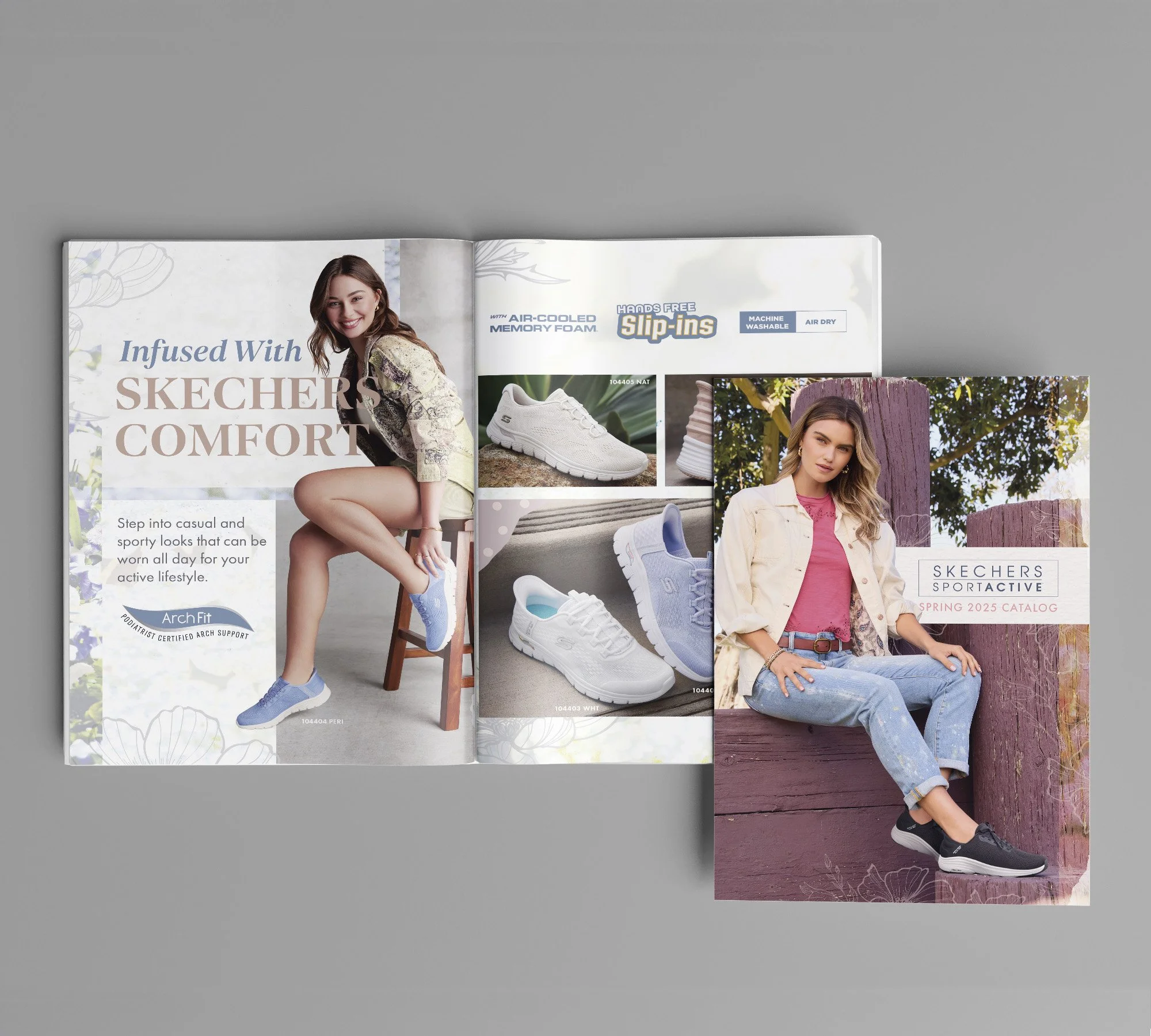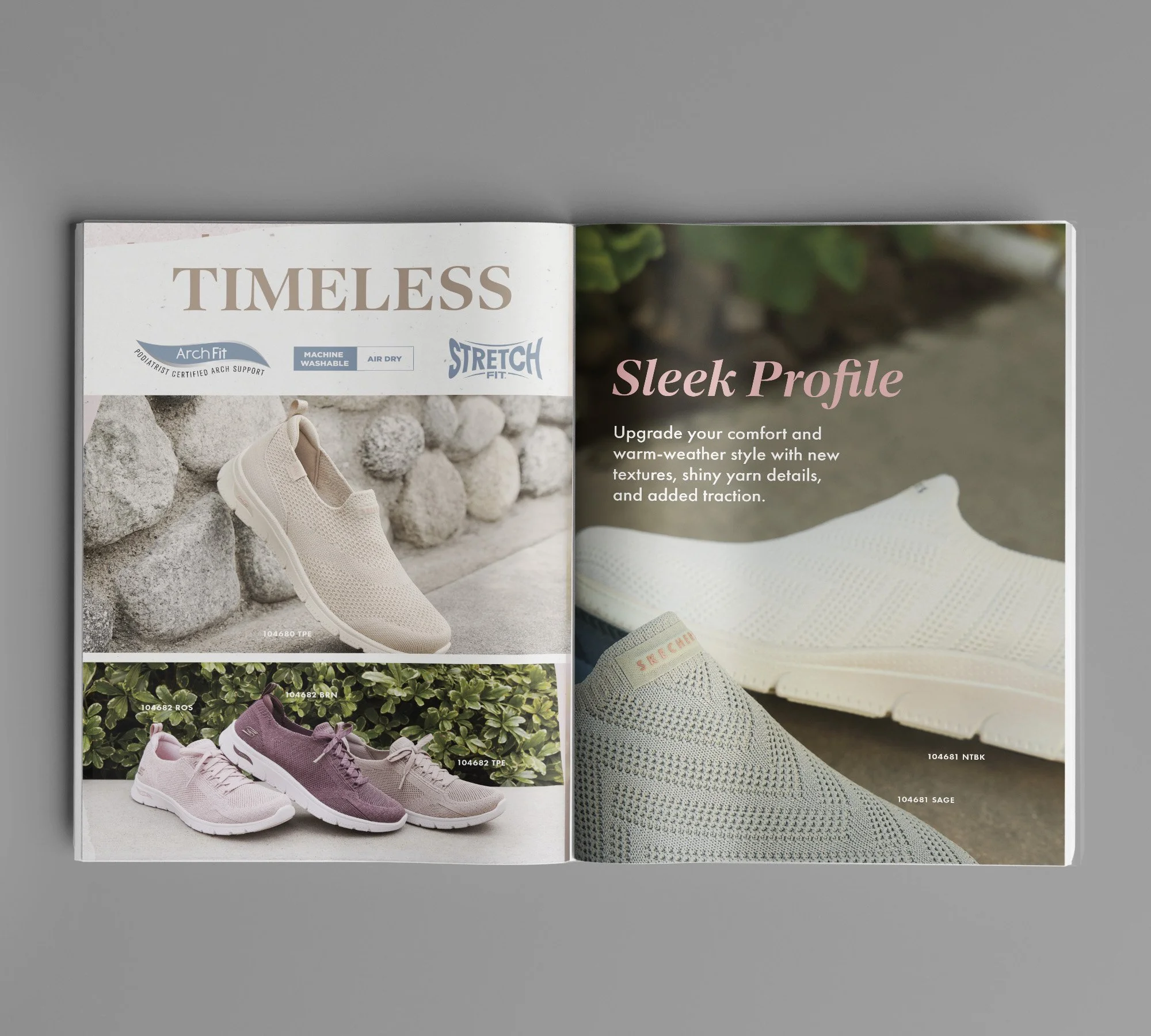 Twice a year, we create a catalog for each Skechers brand, with this edition focused on Sports Active for Spring 2025. It highlights upcoming styles that blend effortlessness and functionality, featuring unique textures and knit patterns. Designed for business partners, buyers, and distributors that supports seasonal planning and product selection.
